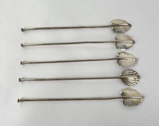 5 Vintage Taxco Sterling Silver Iced Tea Cocktail Straw Spoons, Leaf Design