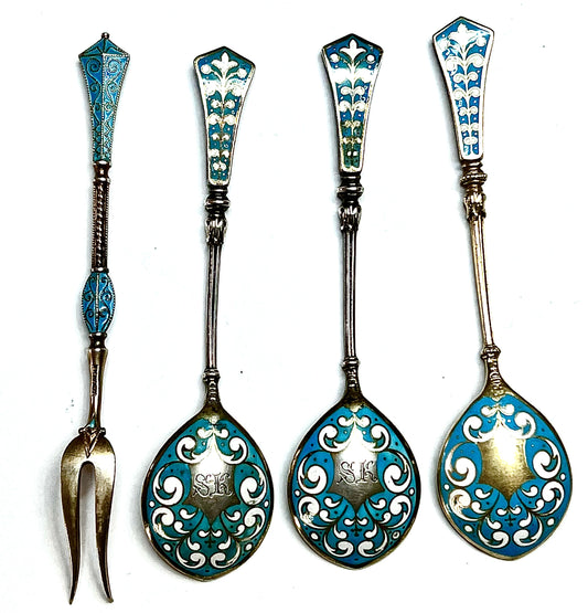 4 VINTAGE DEMITASSE NORWAY DAVID ANDERSEN 925S/ENAMEL STERLING SILVER SPOON FORK