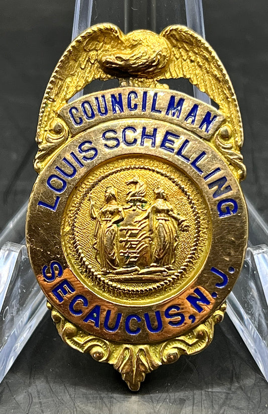 1970's Councilman Secaucus New Jersey Badge Named "LOUIS SCHELLING" Shield
