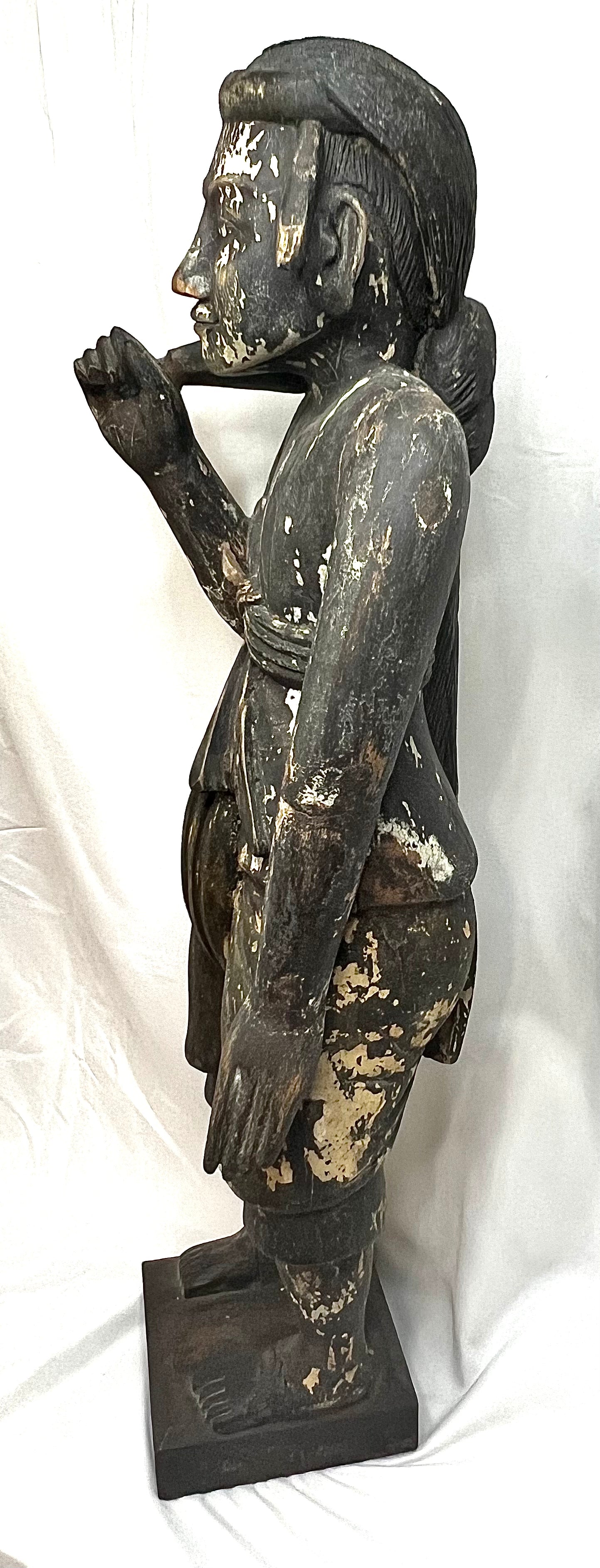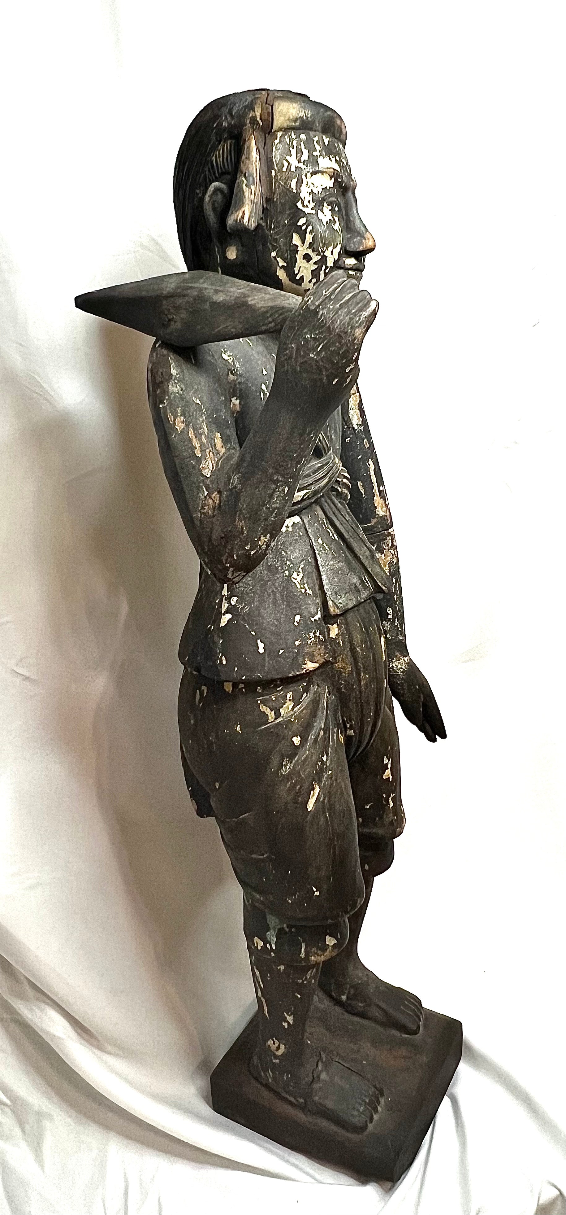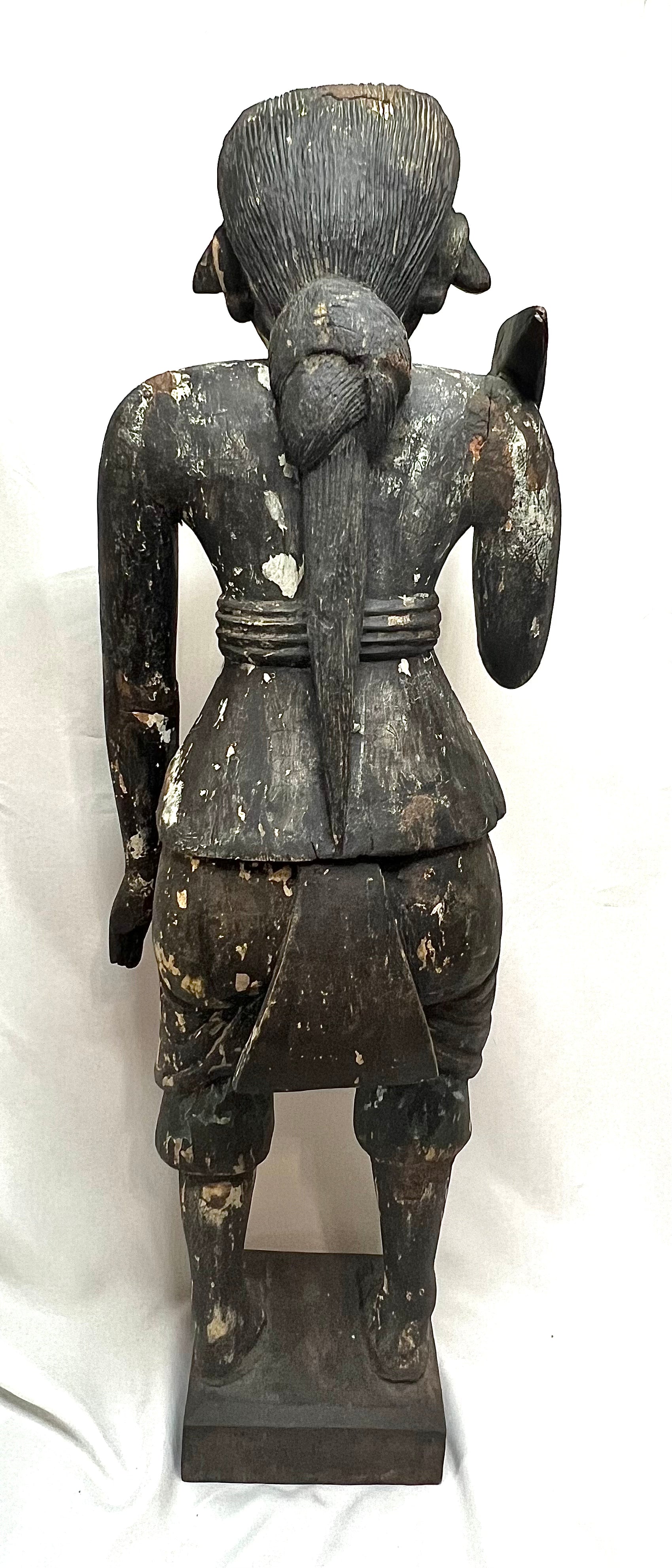 Antique Myanmar Burma Wood Nat Figure 19th Century . This was brought back in the 1950's by Roger McCarthy. Who was in the CIA working with getting Tibetans out of China. Many of the items from this collection were gifts Mr. McCarthy received from local Tibetans. This Is a very old piece as you can see from the pictures, I believe it is right around 1900, posable late 1800's. He Measures 27 3/4" tall X 8 3/4" wide at base X roughly 8" deep. Please not in picture that there is a cracks at the feet and top of head. I acquired these items from Mr. McCarty's Estate auction. Would look great in any collection. Please refer to pictures as they are part of the description and feel free to message with any questions. please refer to pictures for more info on Roger McCarthy.