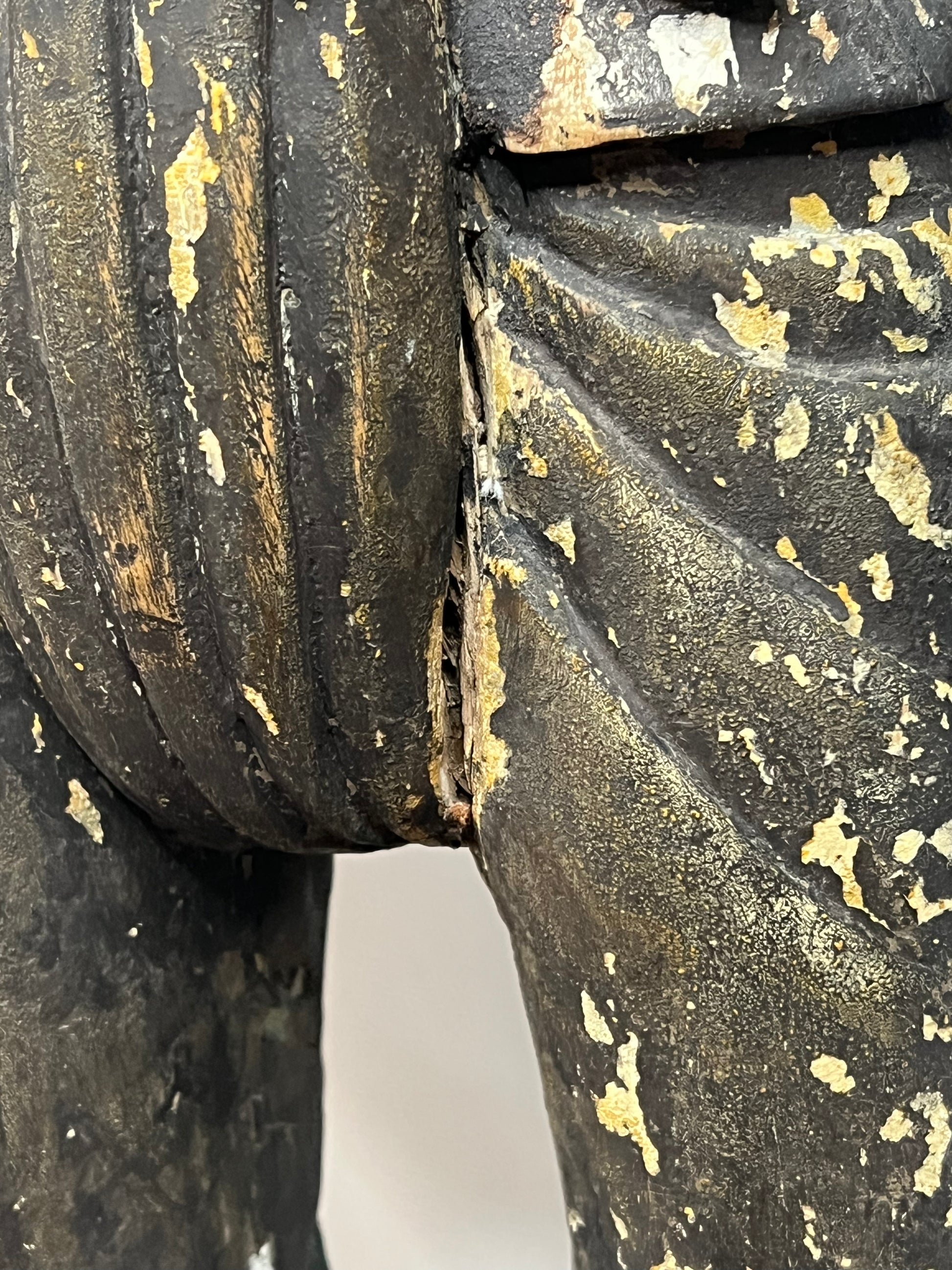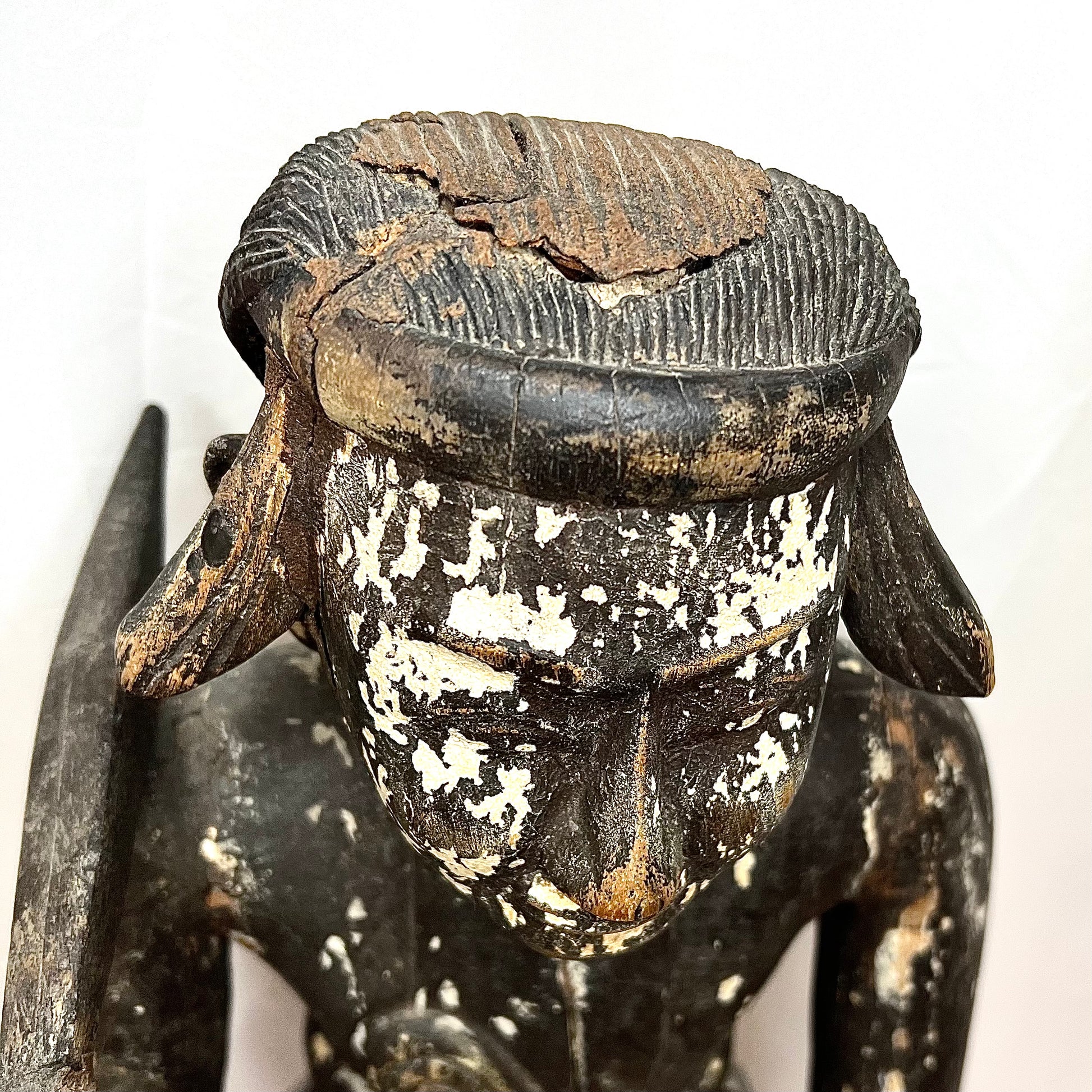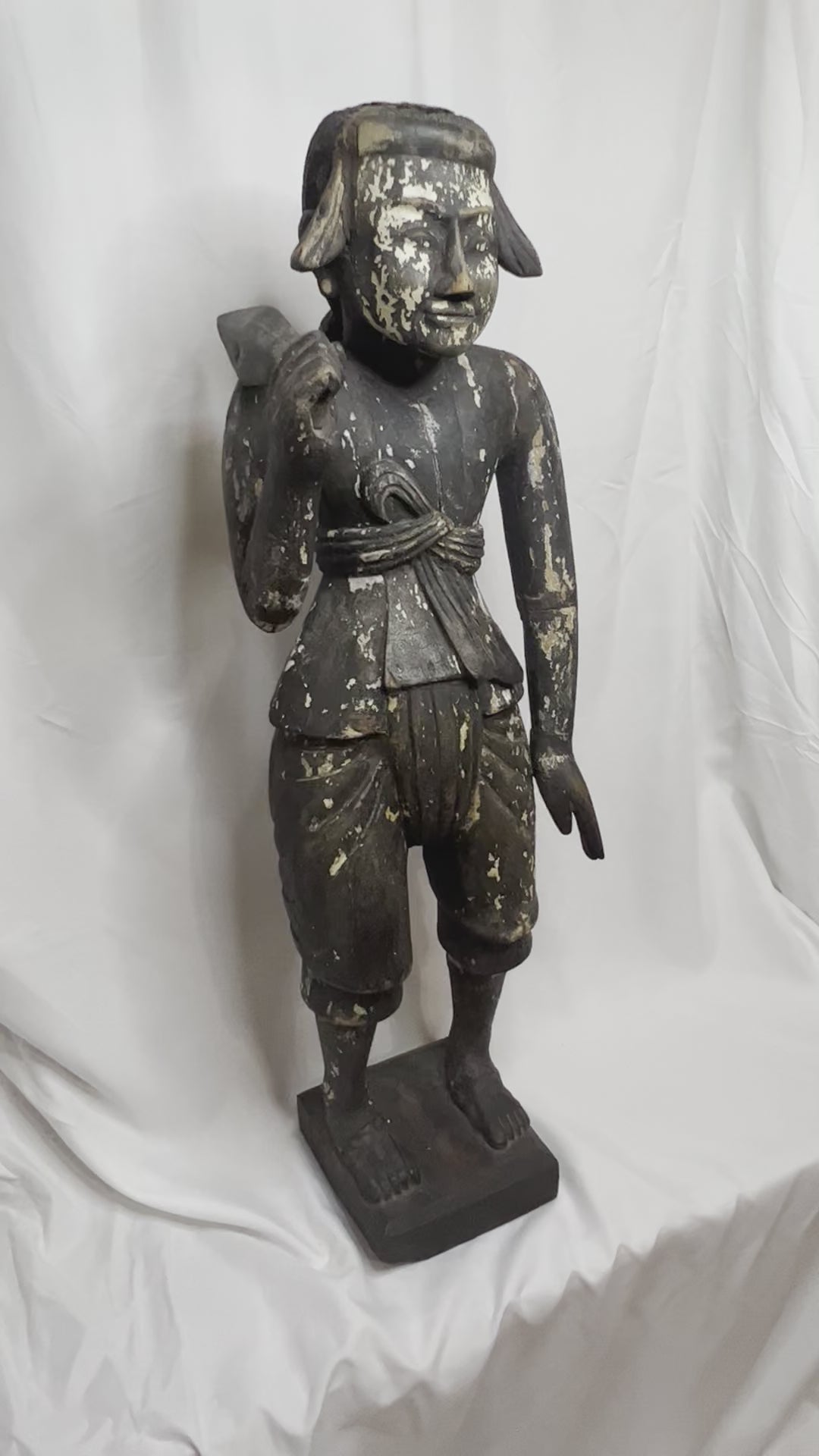 Antique Myanmar Burma Wood Nat Figure 19th Century . This was brought back in the 1950's by Roger McCarthy. Who was in the CIA working with getting Tibetans out of China. Many of the items from this collection were gifts Mr. McCarthy received from local Tibetans. This Is a very old piece as you can see from the pictures, I believe it is right around 1900, posable late 1800's. He Measures 27 3/4" tall X 8 3/4" wide at base X roughly 8" deep. Please not in picture that there is a cracks at the feet and top of head. I acquired these items from Mr. McCarty's Estate auction. Would look great in any collection. Please refer to pictures as they are part of the description and feel free to message with any questions. please refer to pictures for more info on Roger McCarthy.