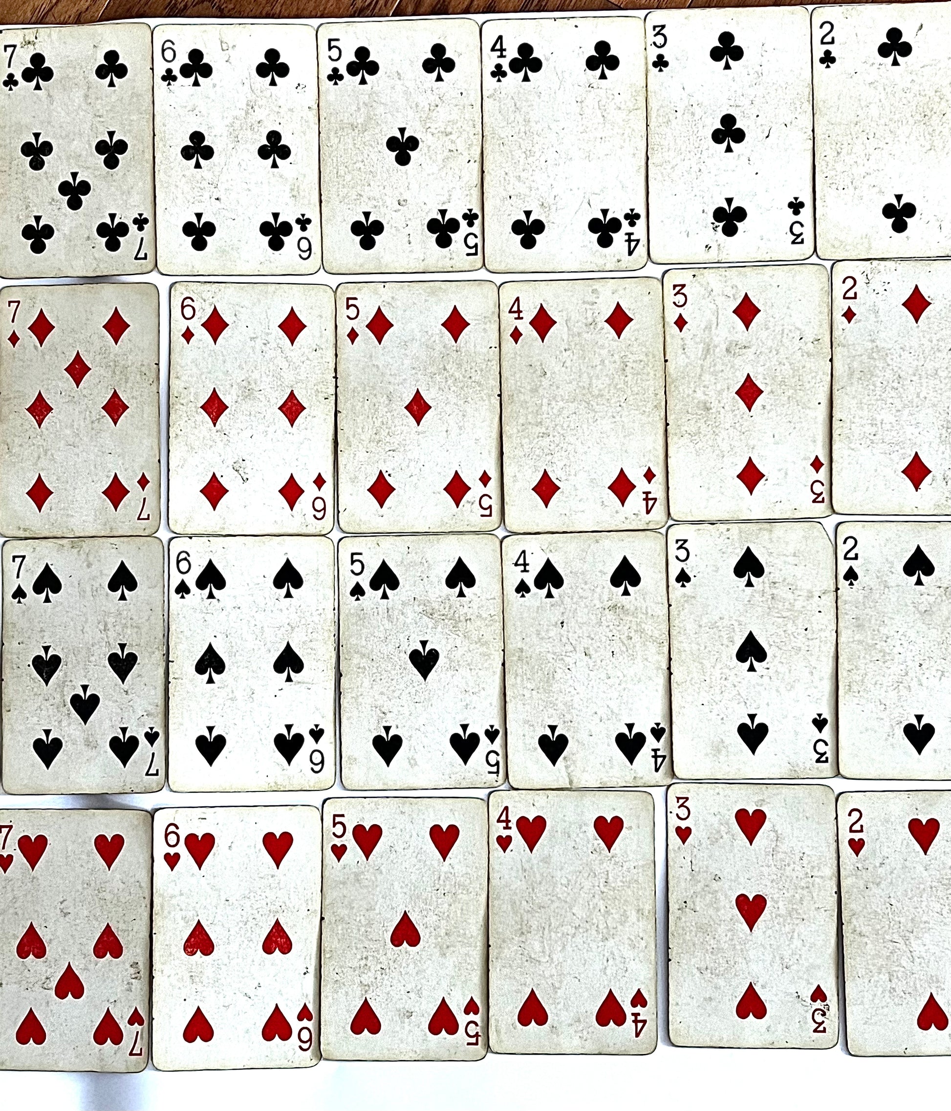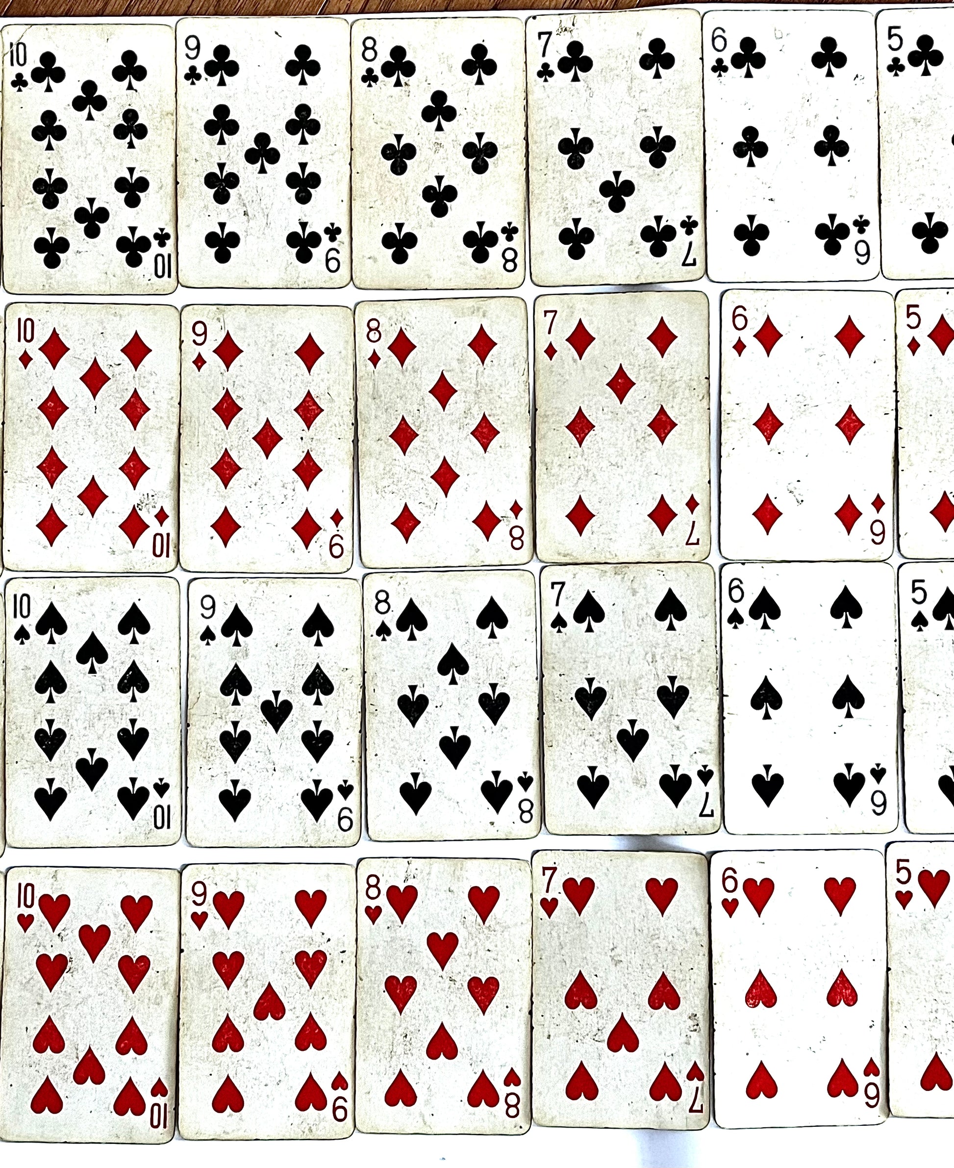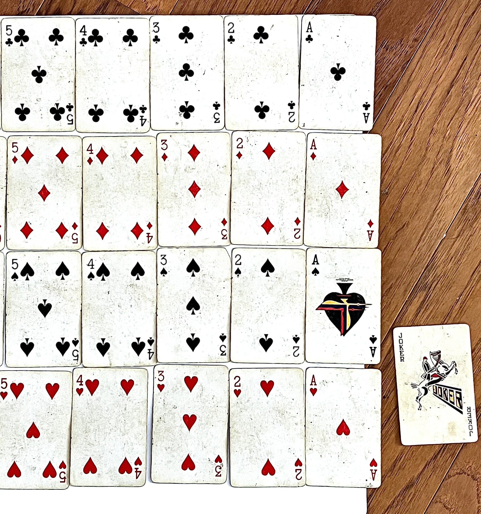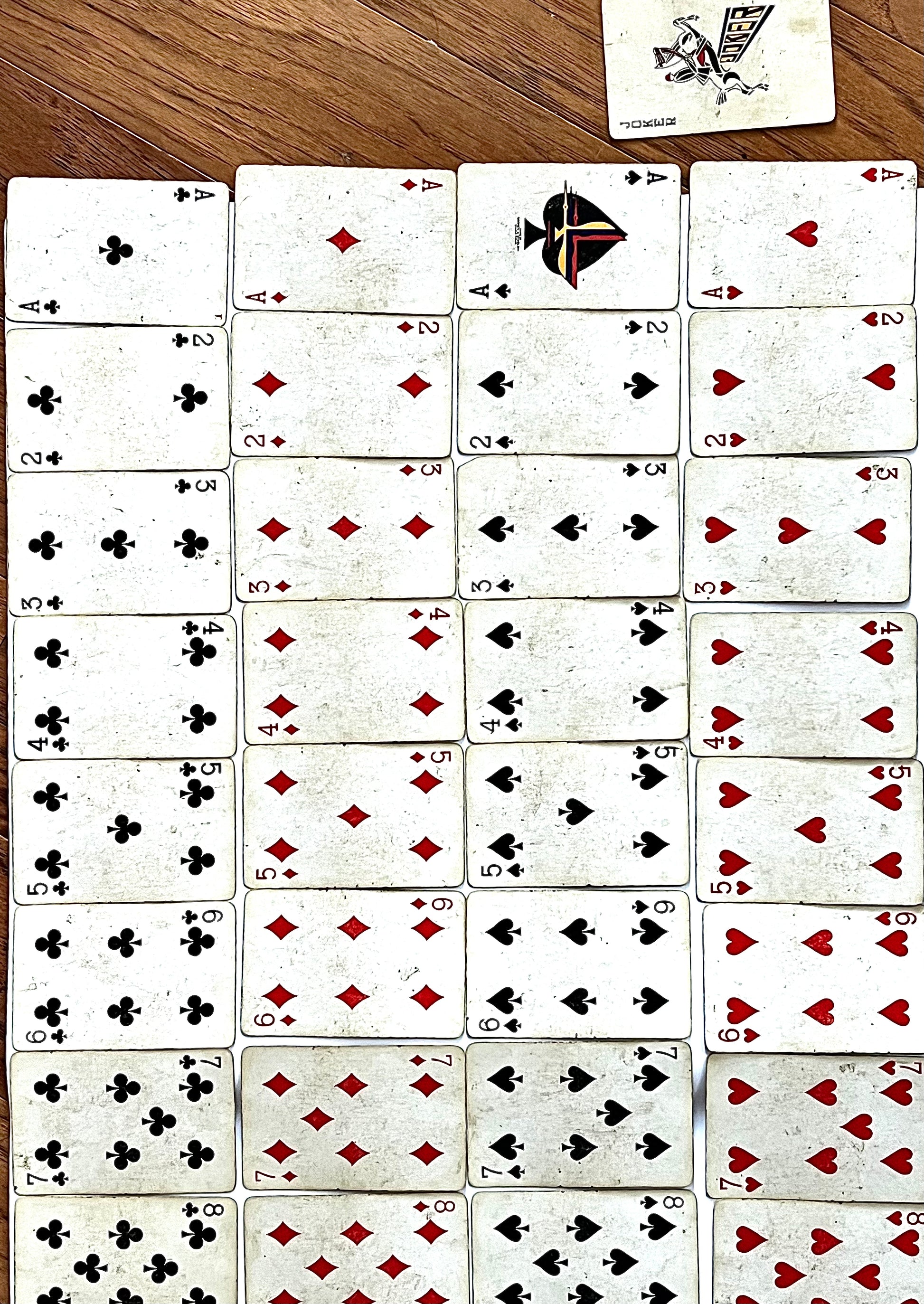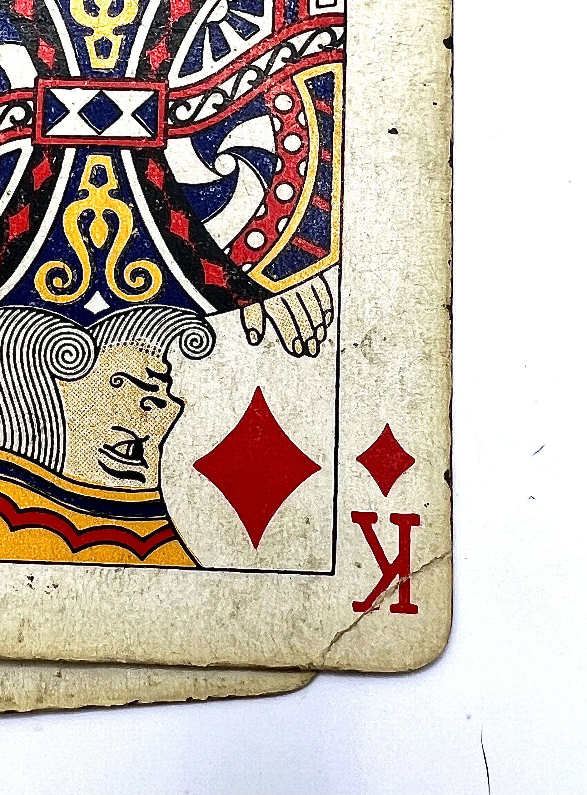 Manufactured by Brown & Bigelow in the USA and once again, the evidence suggests to me that production began in 1939 at the earliest. This deck also says “Drink Coca-Cola in Bottles” in italics. This is a Hund & Eger deck. Cards with damage have individual Pictures.
