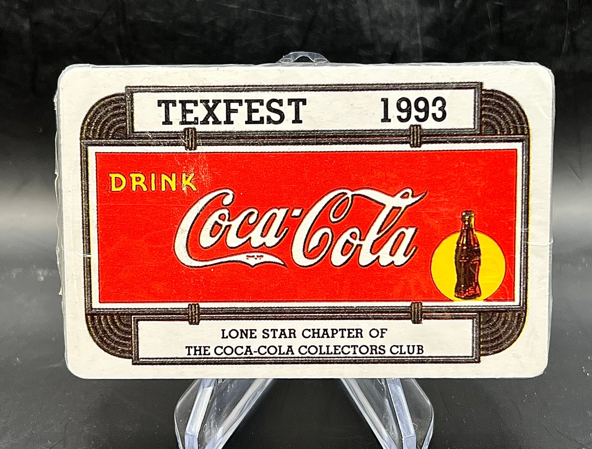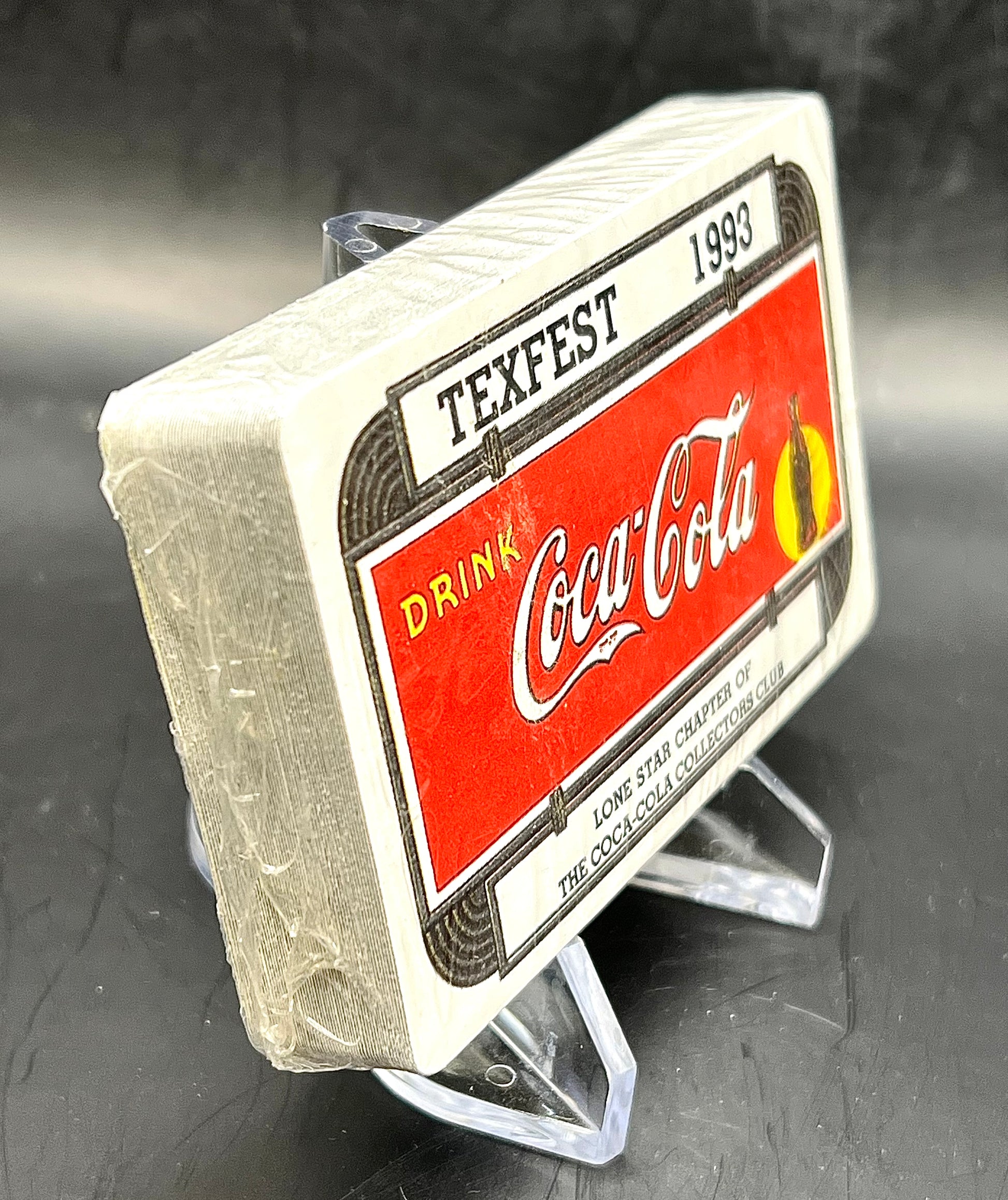 Full deck of unopened Coca Cola TEXFEST 1993 Playing cards. TCCC Lone Star Chapter Of The COCA COLA Collectors Club. This deck is bright in color and cellophane is still completely in tact. This would make a AWESOME addition to any collection. Please refer to pictures as they are part of the description. Feel free to message with any questions.