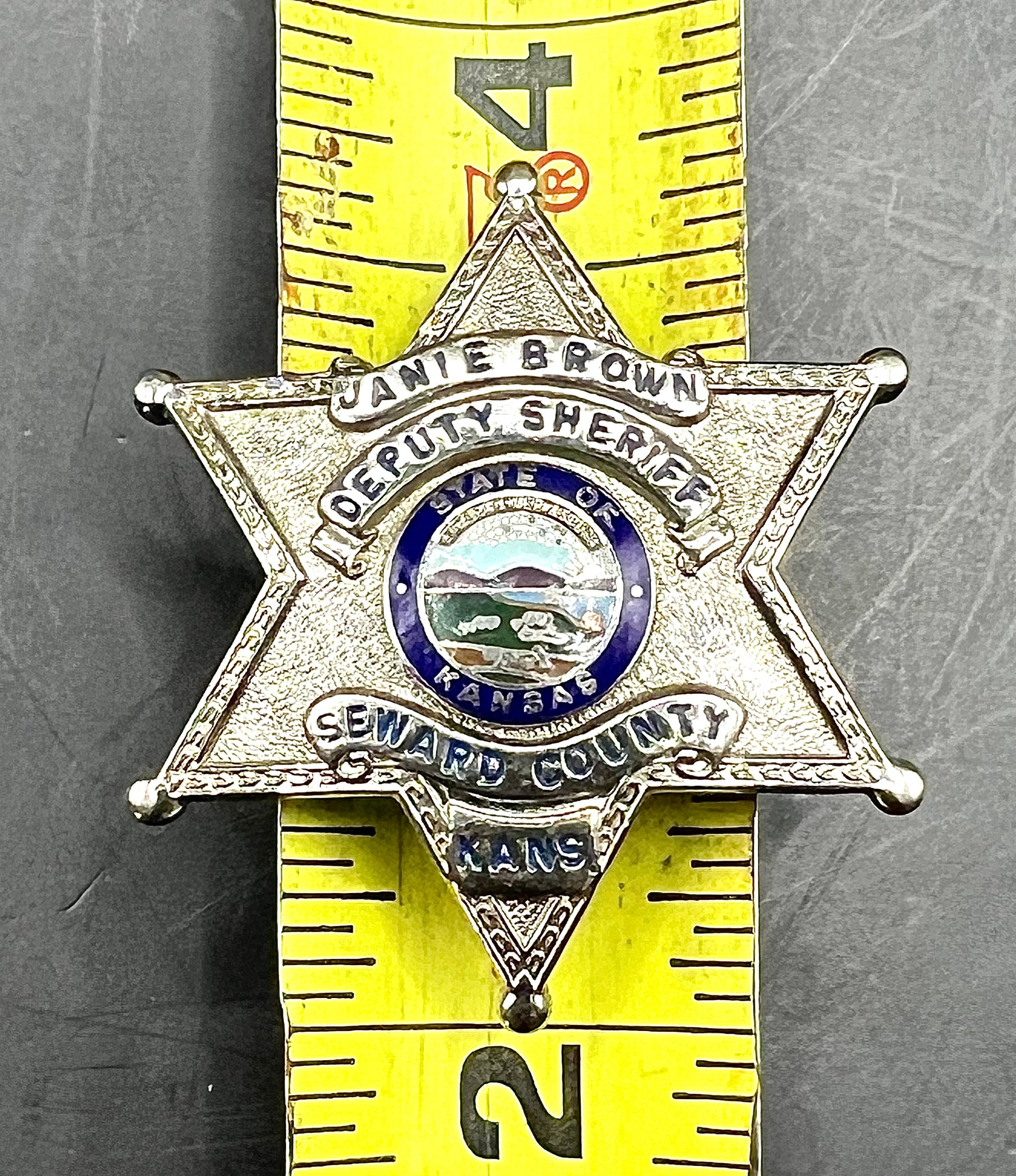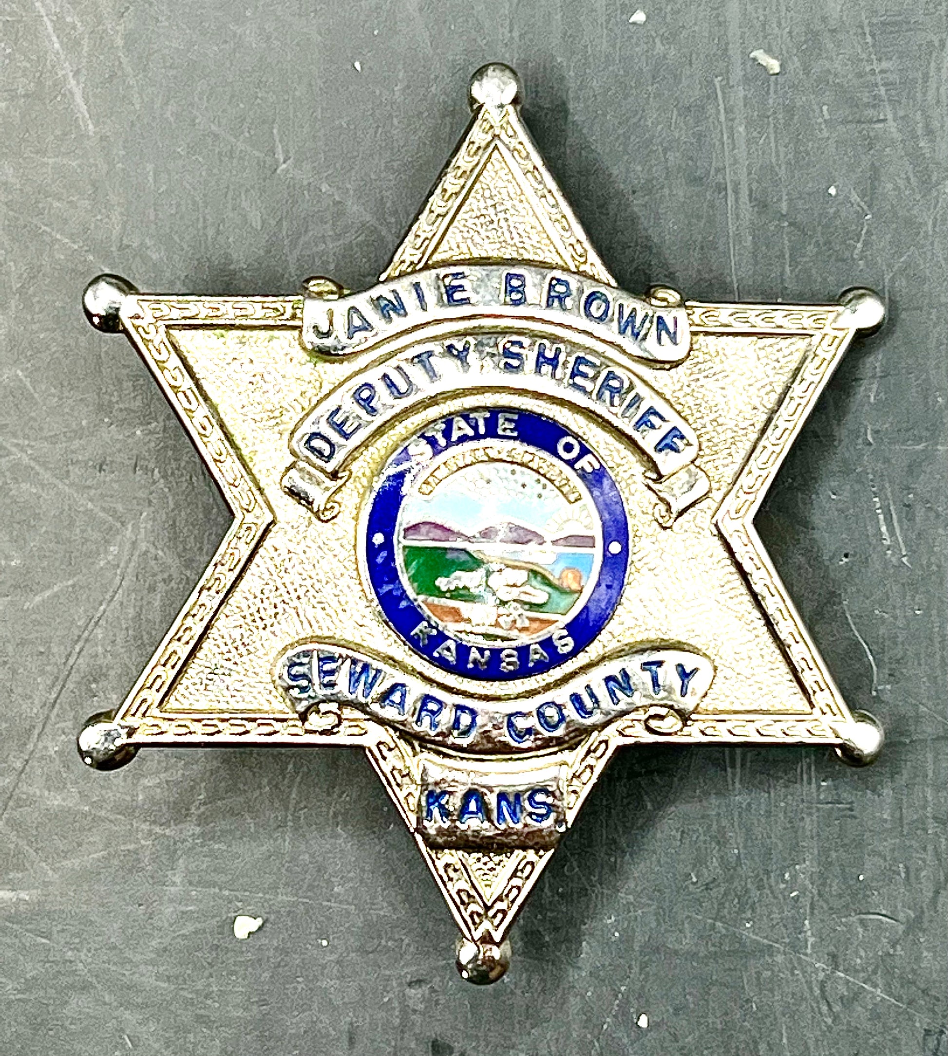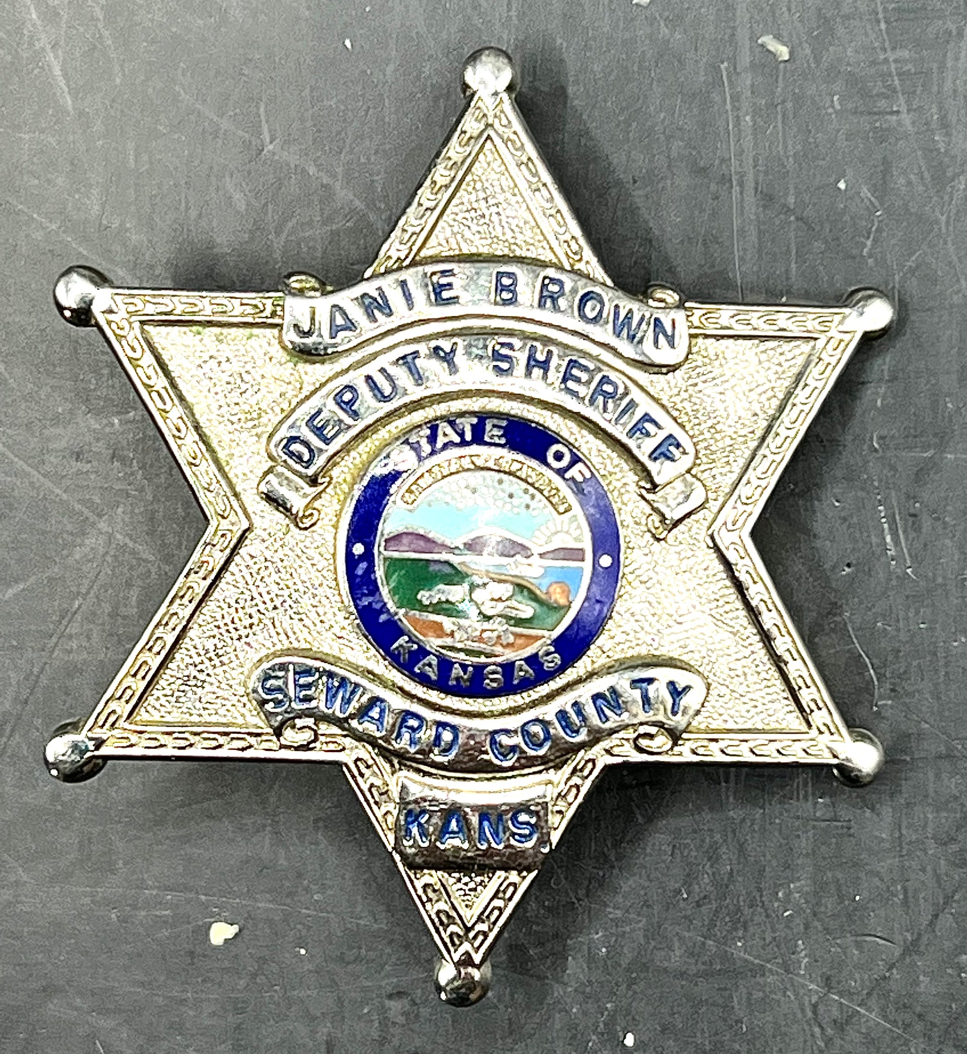 Deputy Sheriff Seward County Kansas Badge Named "Janie Brown"
