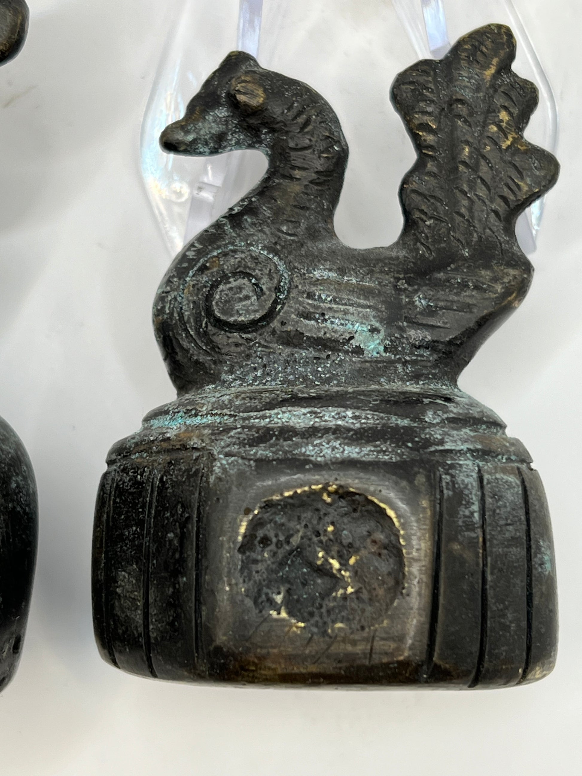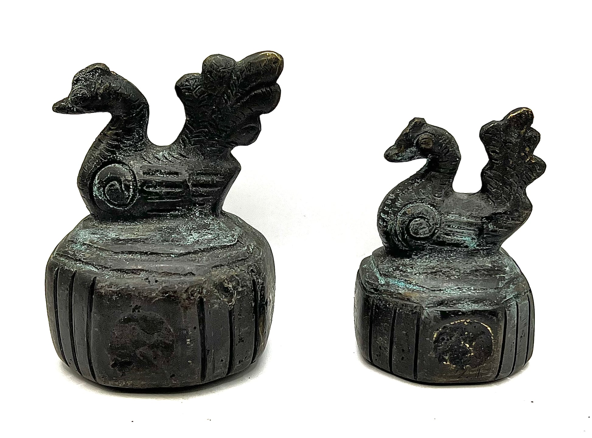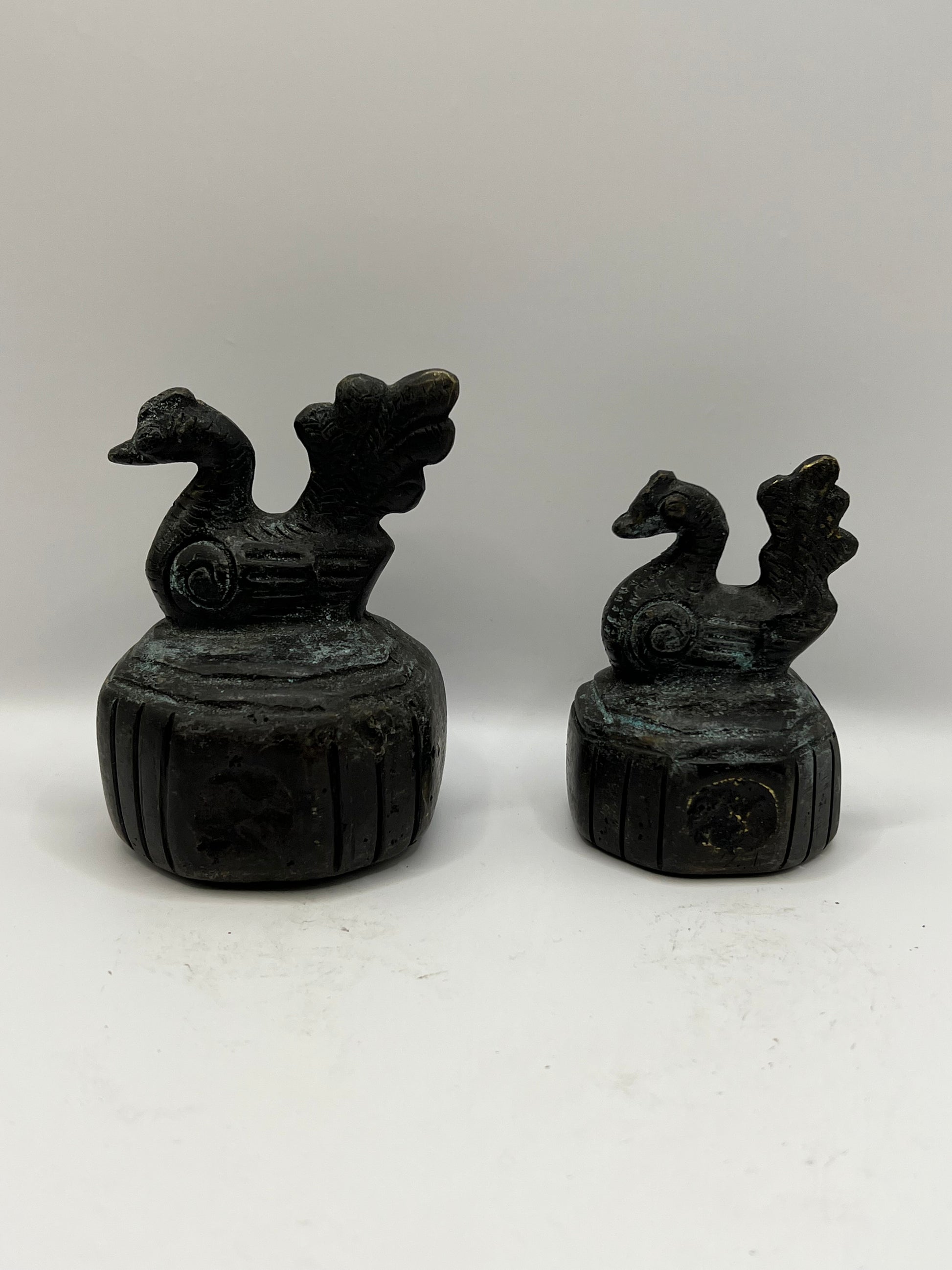 RARE Antique Set Of 2 BRONZE Burmese Myanmar Chicken Bird OPIUM WEIGHTS Thailand
