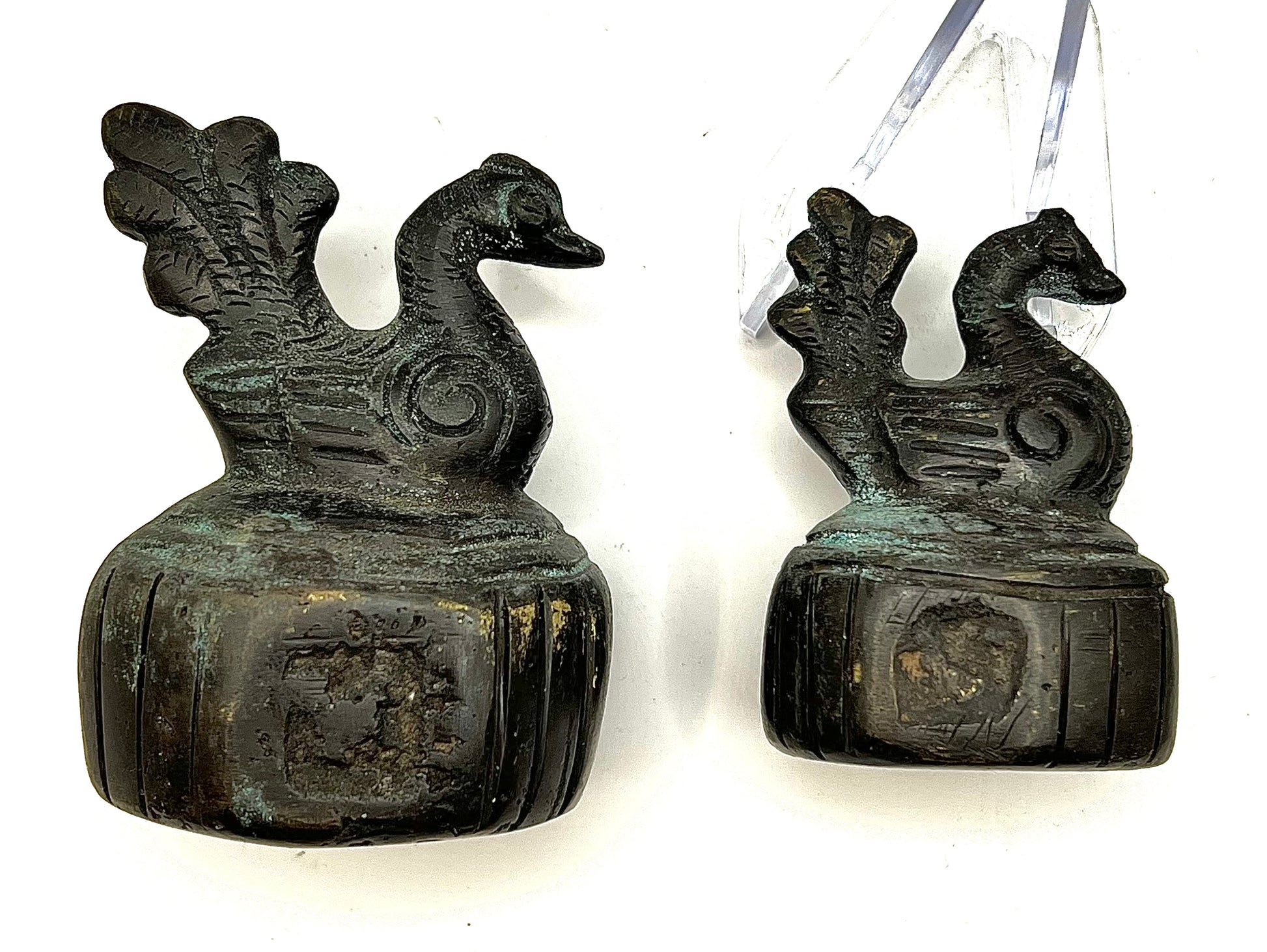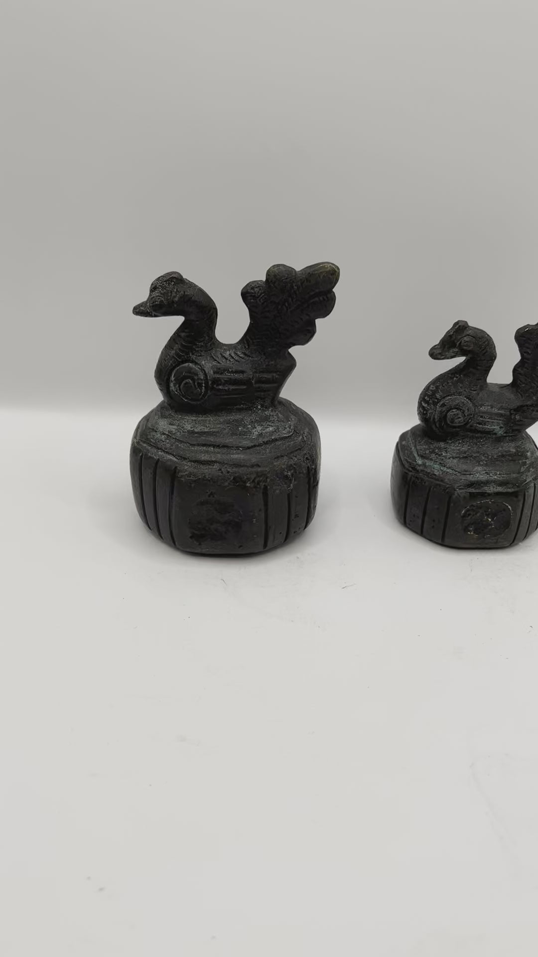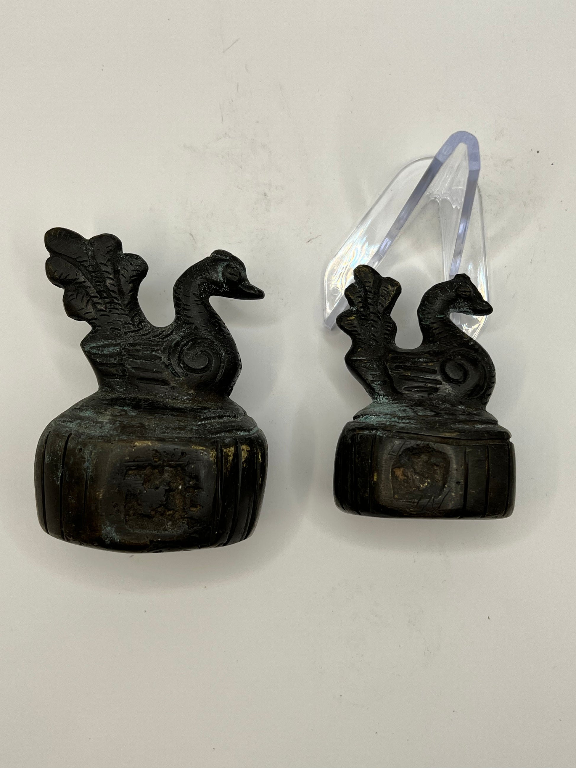 RARE Antique Set Of 2 BRONZE Burmese Myanmar Chicken Bird OPIUM WEIGHTS Thailand