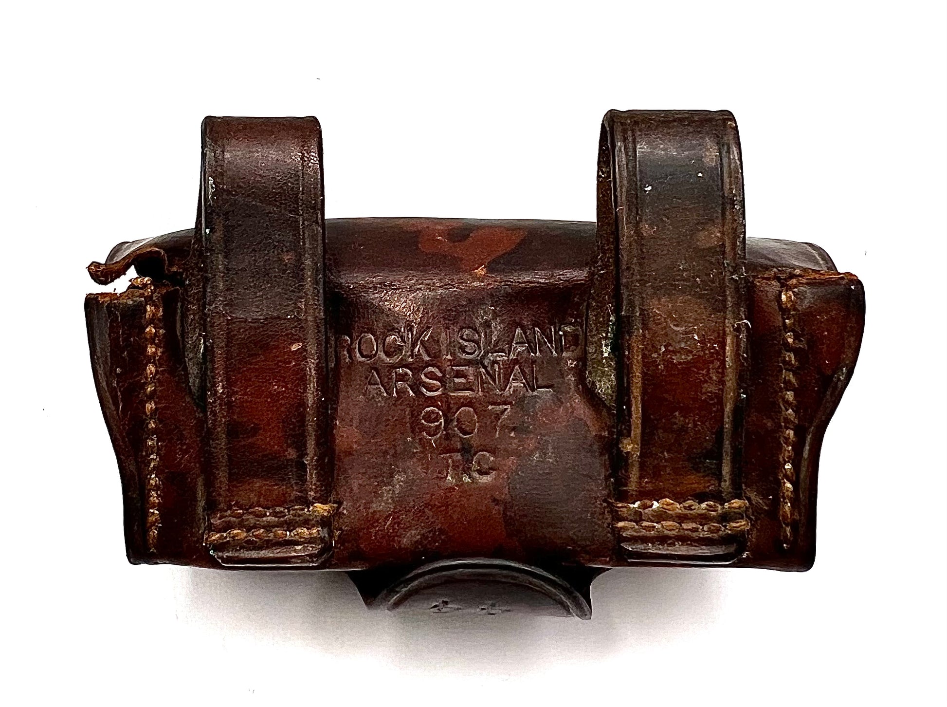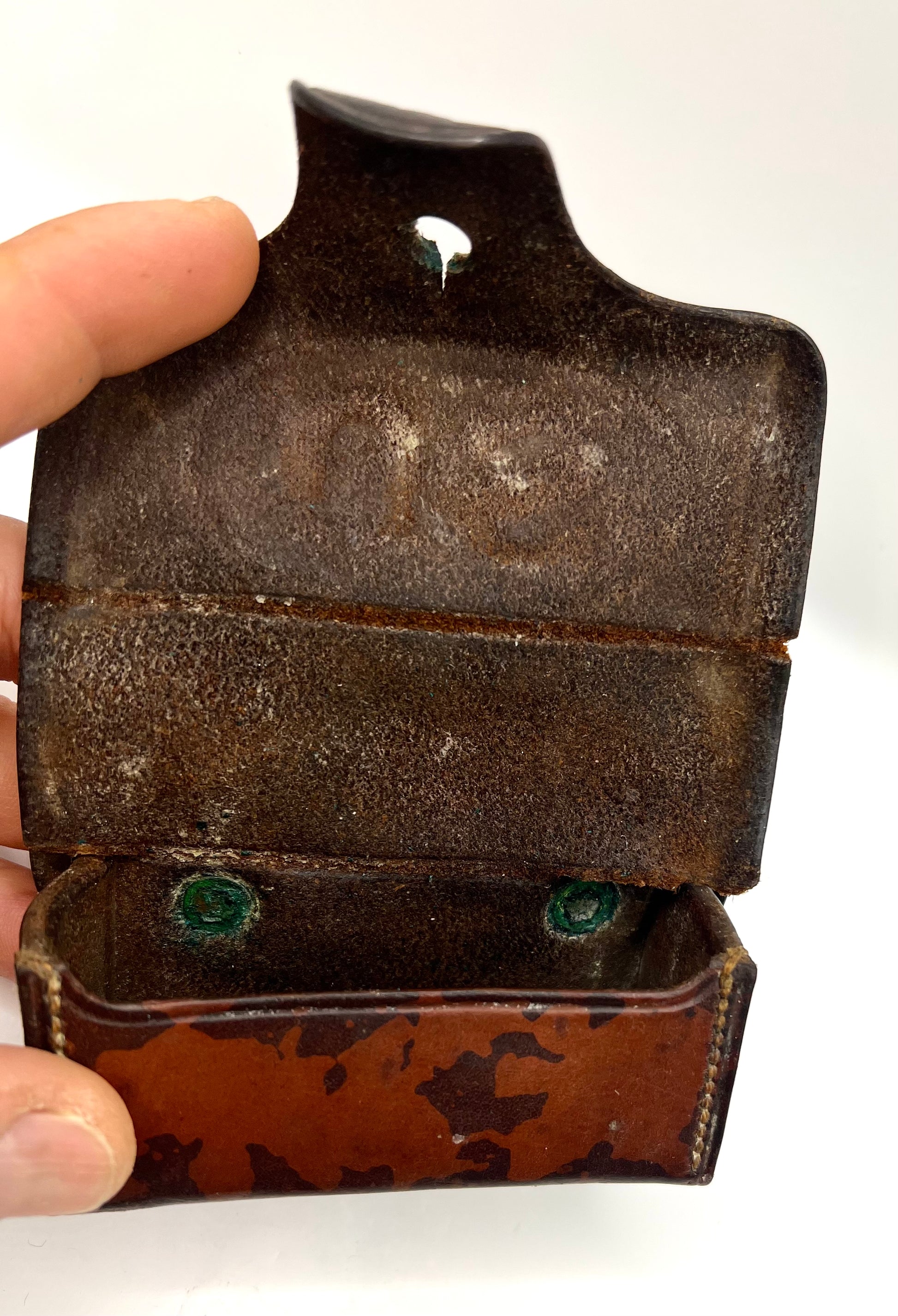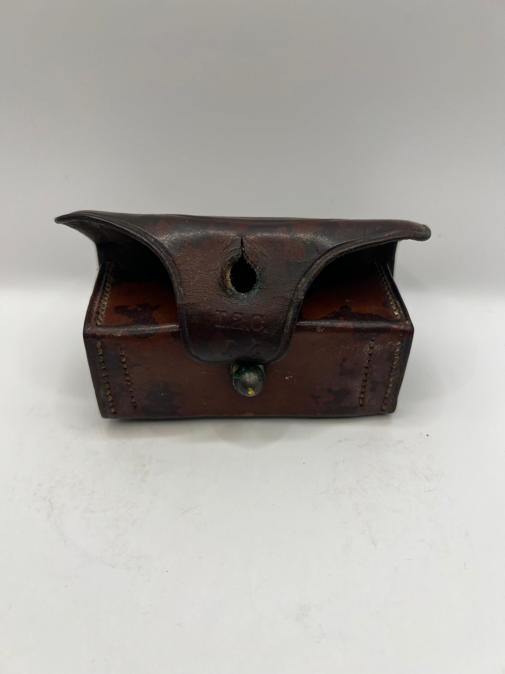 This is a nice example of a WW1 era leather .38 cartridge box. Marked (US Rock Island Arsenal 1907 TC) and (I.2.C 44). Does have some small tares on corners Please look at pictures and video as they are part of the description. Feel free to message with any questions.