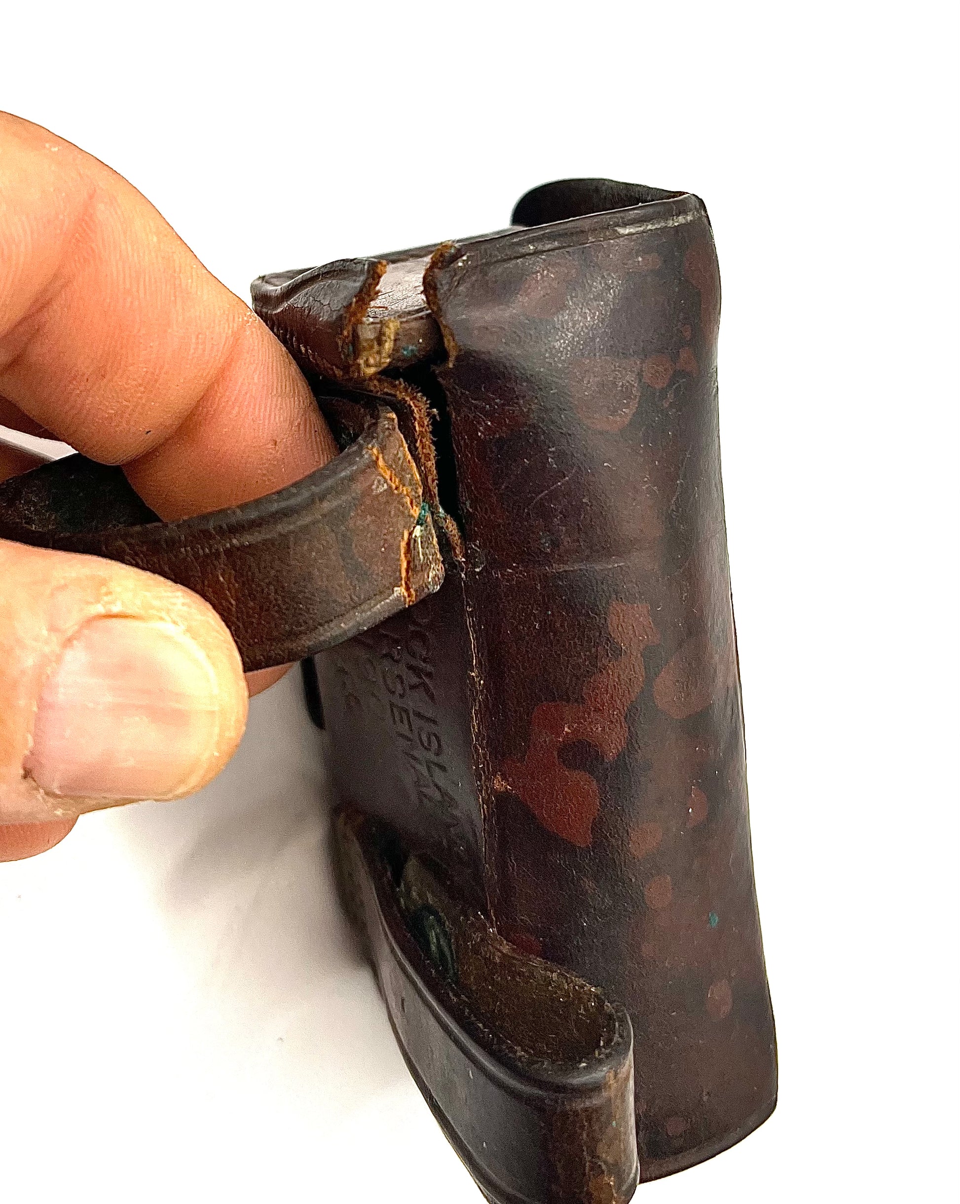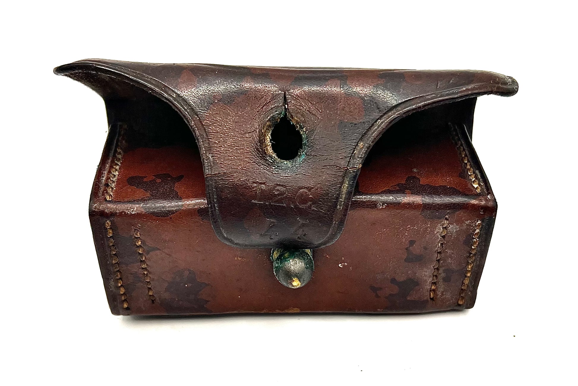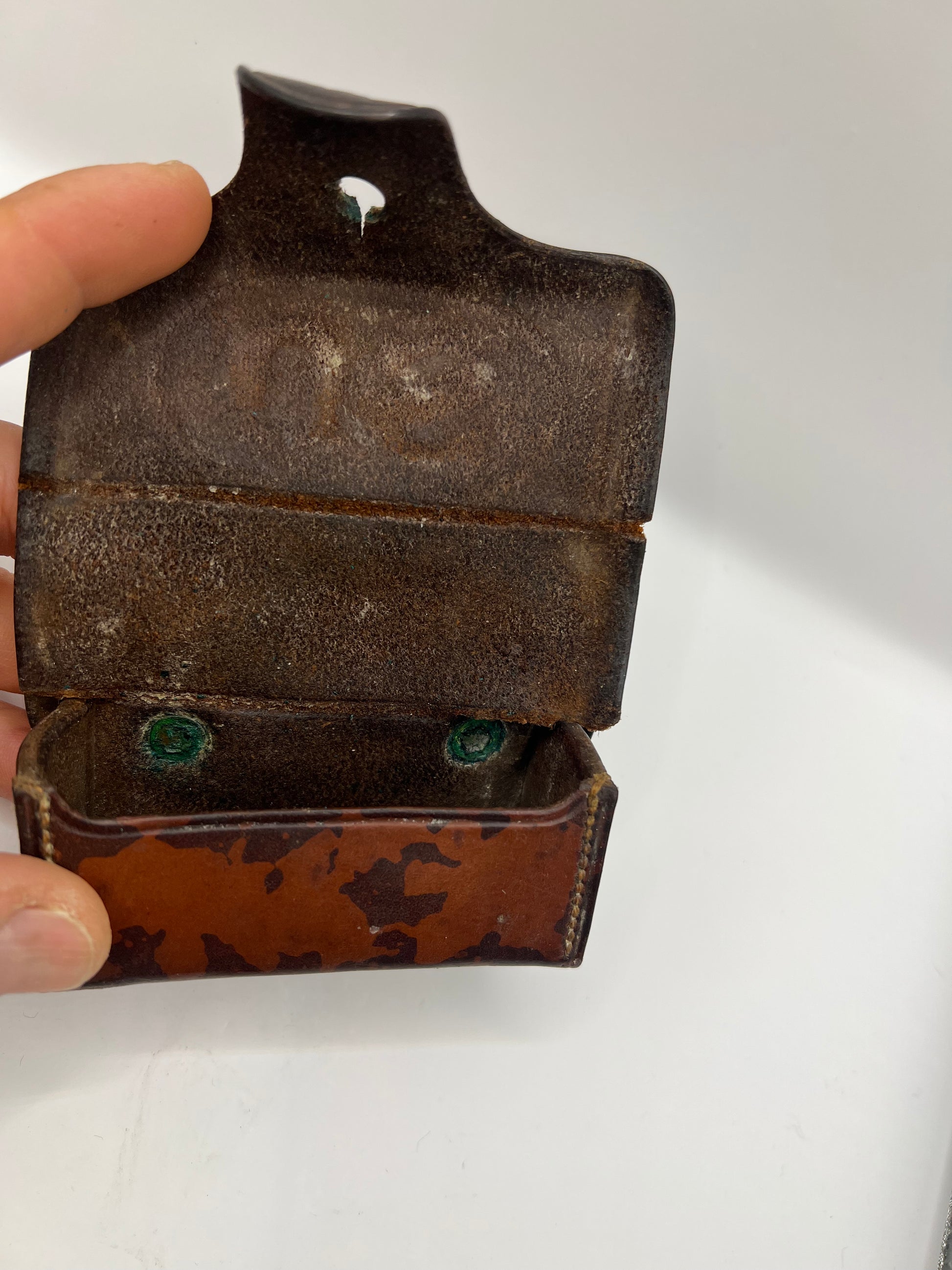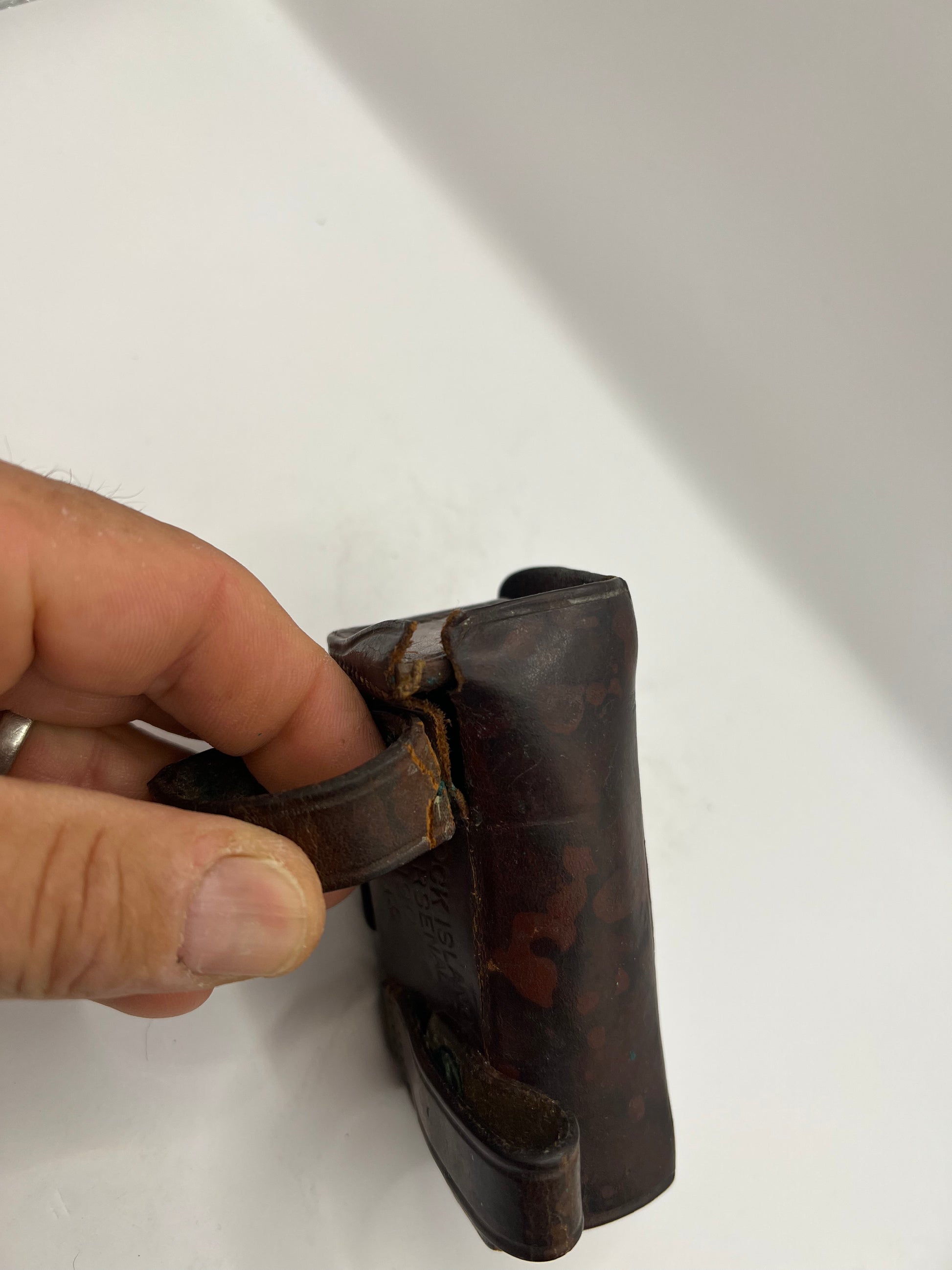 This is a nice example of a WW1 era leather .38 cartridge box. Marked (US Rock Island Arsenal 1907 TC) and (I.2.C 44). Does have some small tares on corners Please look at pictures and video as they are part of the description. Feel free to message with any questions.